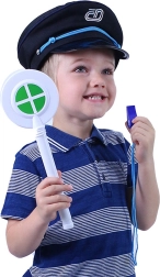 Ten dziecięcy zestaw dyżurnego ruchu zapewnia autentyczne doświadczenie ze świata kolei. Dzięki czapce z logo ČD, funkcjonalnemu gwizdkowi i lekkiej tarczce dzieci mogą bezpiecznie naśladować pracę dyżurnego ruchu, rozwijać wyobraźnię i umiejętności społeczne.