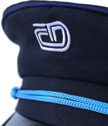 - czarna/niebieska czapka, biała tarczka, niebieski gwizdek
