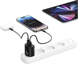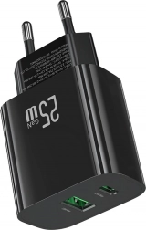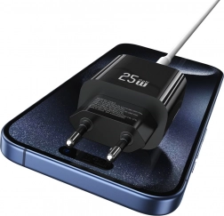 Ładuj nawet dwa urządzenia jednocześnie dzięki kombinacji portów USB‑C i USB‑A. Moc 25 W oraz obsługa szybkiego ładowania zapewniają efektywne uzupełnianie energii bez zbędnego czekania. Kompaktowe wymiary i wysokiej jakości wykonanie czynią z ładowarki niezawodnego pomocnika w domu i w drodze.