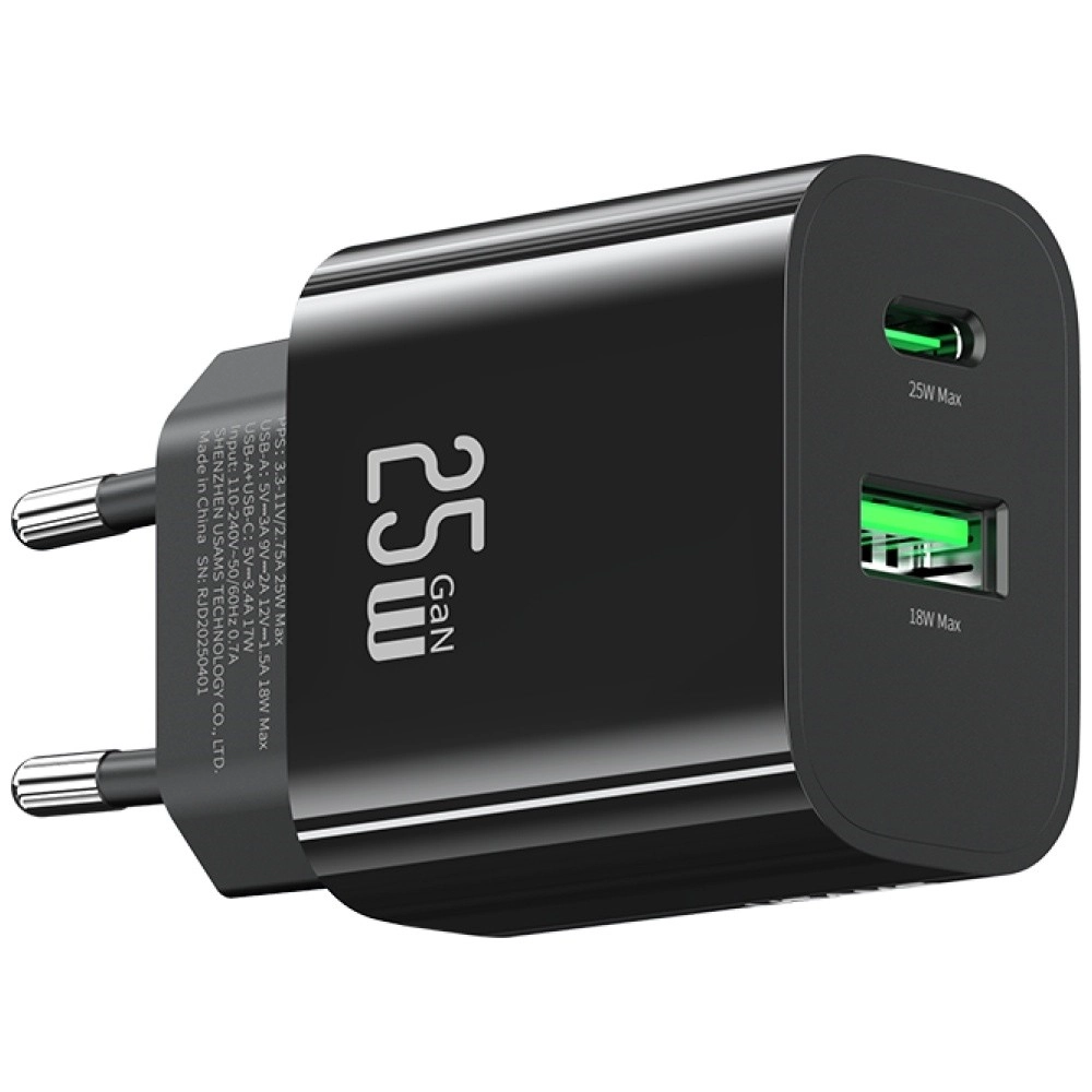Kompaktowa ładowarka sieciowa marki USAMS oferuje moc 25 W, porty USB‑C + USB‑A oraz technologię Fast Charging do szybkiego i bezpiecznego uzupełniania energii. Dzięki inteligentnemu układowi, stabilnemu napięciu i ochronie przed przeciążeniem jest idealna dla smartfonów, tabletów i słuchawek. Lekka i wytrzymała konstrukcja w eleganckim czarnym kolorze świetnie sprawdzi się w podróży.