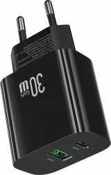 Ładowarka USAMS 30 W to idealne rozwiązanie dla smartfonów, tabletów i innej elektroniki. Połączenie portów USB‑C i USB‑A umożliwia ładowanie nawet dwóch urządzeń naraz, a inteligentny układ automatycznie dostosowuje prąd dla optymalnego i łagodnego ładowania. Dzięki technologii GaN możesz liczyć na wyższą sprawność i niższe nagrzewanie.