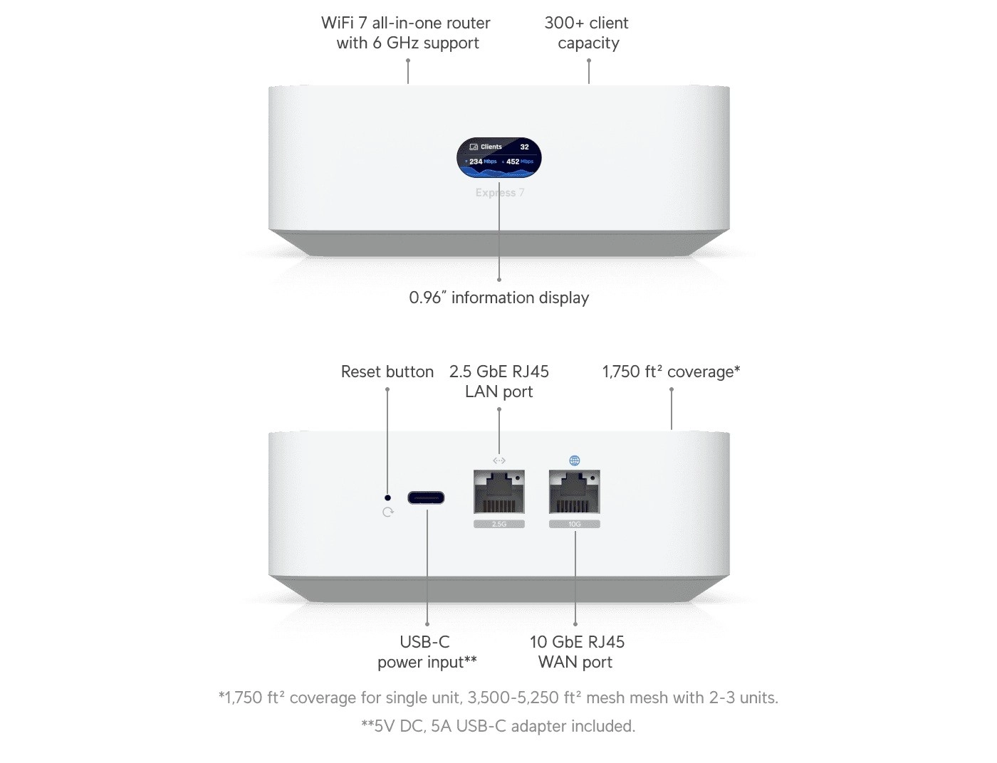 - Wszystko w jednym: brama, kontroler i AP z Wi‑Fi 7