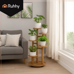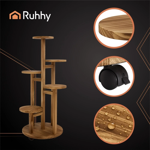 Wprowadź do wnętrza ład i zieleń dzięki lekkiej, mobilnej i praktycznej konstrukcji kwietnika RUHHY. Obrotowe kółka z blokadą umożliwiają płynne przemieszczanie bez rysowania podłogi, a 6 poziomów zapewnia miejsce na doniczki różnej wielkości w jednej harmonijnej kompozycji. Naturalne drewno sosnowe jest estetyczne, łatwe w czyszczeniu i odporne na wilgoć – świetne do wnętrz i na zewnątrz.