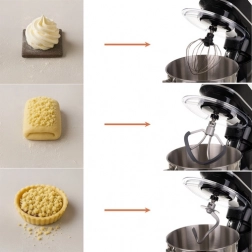 W zestawie znajdziesz 3 końcówki (hak, mieszadło, trzepaczka balonowa) do szerokiego zakresu zadań – od ciężkich ciast drożdżowych po puszyste kremy i piany z białek. Antypoślizgowe nóżki zapewniają stabilność, wybrane elementy można myć w zmywarce, a kod QR z przepisami zainspiruje Cię do nowych pomysłów w kuchni.