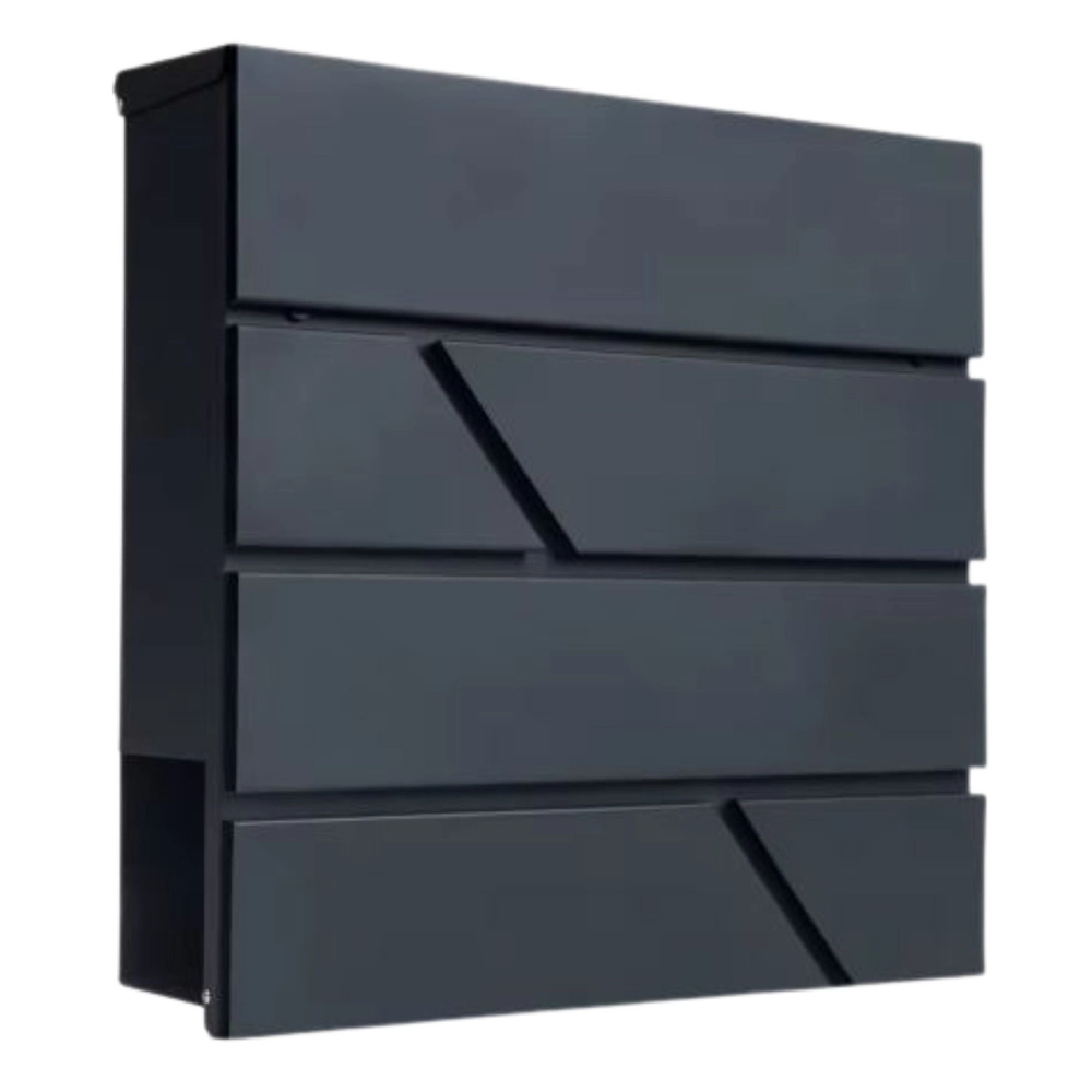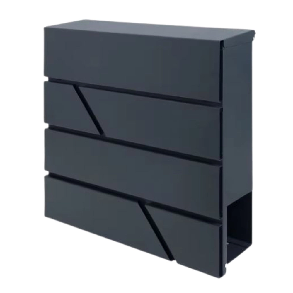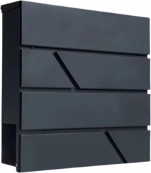 Ta duża skrzynka pocztowa łączy funkcjonalność i ponadczasowy wygląd. Wykonana jest z ocynkowanej stali malowanej proszkowo, co zapewnia wysoką odporność na korozję, deszcz i zużycie mechaniczne. Geometryczne wycięcia nadają jej nowoczesny charakter i łatwo komponują się z różnymi stylami elewacji.