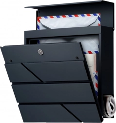 Praktyczny wrzut o szerokości 3,5 cm umożliwia wygodne wkładanie listów, czasopism i dokumentów w formacie A4. Korespondencja jest chroniona zamykanymi drzwiczkami; w zestawie znajdują się 2 klucze. Dołączono również akcesoria montażowe do szybkiej i prostej instalacji.