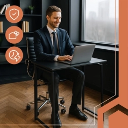Minimalistyczny industrialny design z solidną metalową konstrukcją zapewnia pewność podczas pracy z laptopem i dokumentami.