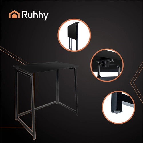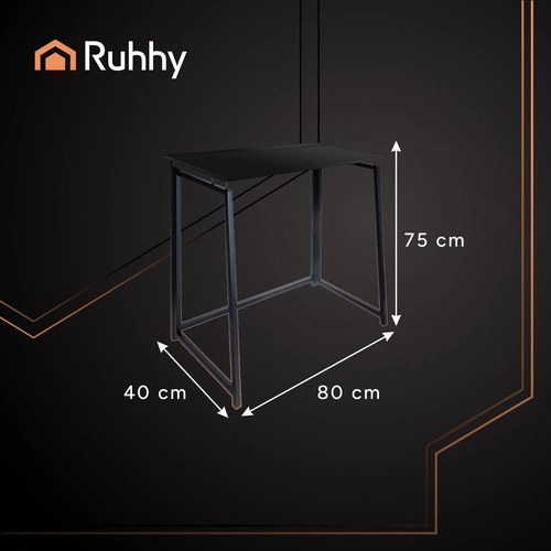 Kompaktowe składane biurko RUHHY łączy nowoczesny industrialny design z praktyczną mobilnością. Dzięki składanej konstrukcji rozłożysz je i schowasz w kilka sekund, jest stabilne, wytrzymuje do 30 kg i świetnie sprawdzi się jako biurko pod laptop do małych mieszkań, domowego biura czy pokoju studenta.