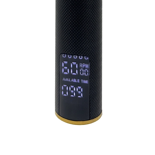 Zintegrowany wyświetlacz czytelnie pokazuje poziom baterii i ustawione obroty, więc masz pracę urządzenia pod pełną kontrolą.