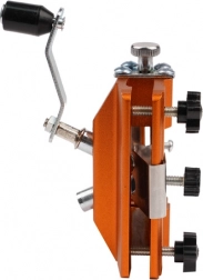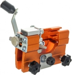 Montaż odbywa się bezpośrednio na prowadnicy – bez zdejmowania łańcucha. Solidne mocowanie i ergonomiczna korbka minimalizują drgania i ryzyko poślizgu. Wytrzymała konstrukcja z anodowanego aluminium ze stalowym osprzętem jest gotowa na wymagające zastosowania w warsztacie i w lesie.
