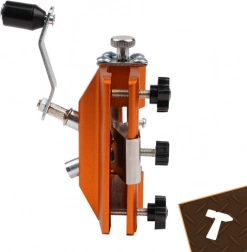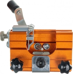 Rowki prowadzące i pokrętła regulacyjne utrzymują wybrany kąt, dzięki czemu wszystkie zęby są ostrzone równomiernie, a piła tnie lżej.