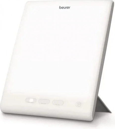 Lampa ze światłem dziennym Beurer TL 45 symuluje naturalne światło słoneczne i pomaga kompensować jego niedobór podczas krótkich zimowych dni lub w ciemnych wnętrzach. Wspiera rytm okołodobowy, poprawia nastrój, koncentrację oraz wieczorny relaks. Dzięki sterowaniu dotykowemu i eleganckiemu wzornictwu sprawdzi się w domu i biurze.