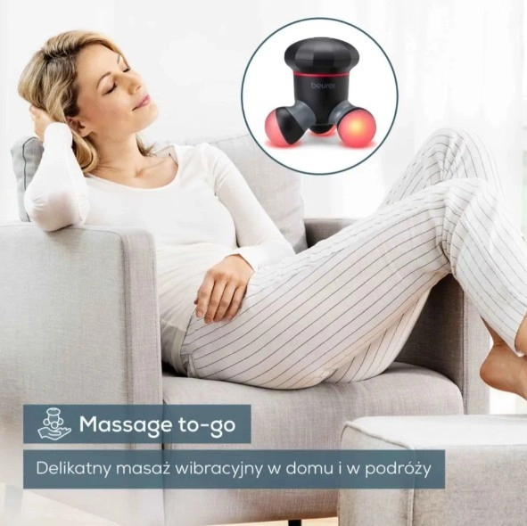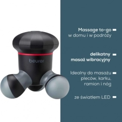 Zredukuj napięcie gdziekolwiek i kiedykolwiek dzięki kompaktowemu masażerowi BEURER MG 18. Mini masażer mieści się w torebce, świetnie leży w dłoni i oferuje delikatny masaż wibracyjny dla pleców, szyi, ramion oraz nóg. Dzięki lekkiej i ergonomicznej konstrukcji oraz podświetleniu LED idealnie sprawdzi się w podróży, a także do szybkiej ulgi w domu lub w biurze.