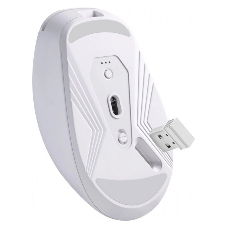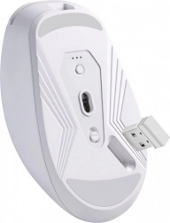 Stylowa bezprzewodowa mysz do pracy i nauki z możliwością podłączenia przez Bluetooth lub adapter USB 2,4 GHz. Oferuje optyczny sensor do 1600 DPI z 3 trybami czułości, wbudowany akumulator 400 mAh, 2 boczne przyciski do szybkiego sterowania oraz teflonowe ślizgacze dla płynnego ruchu.