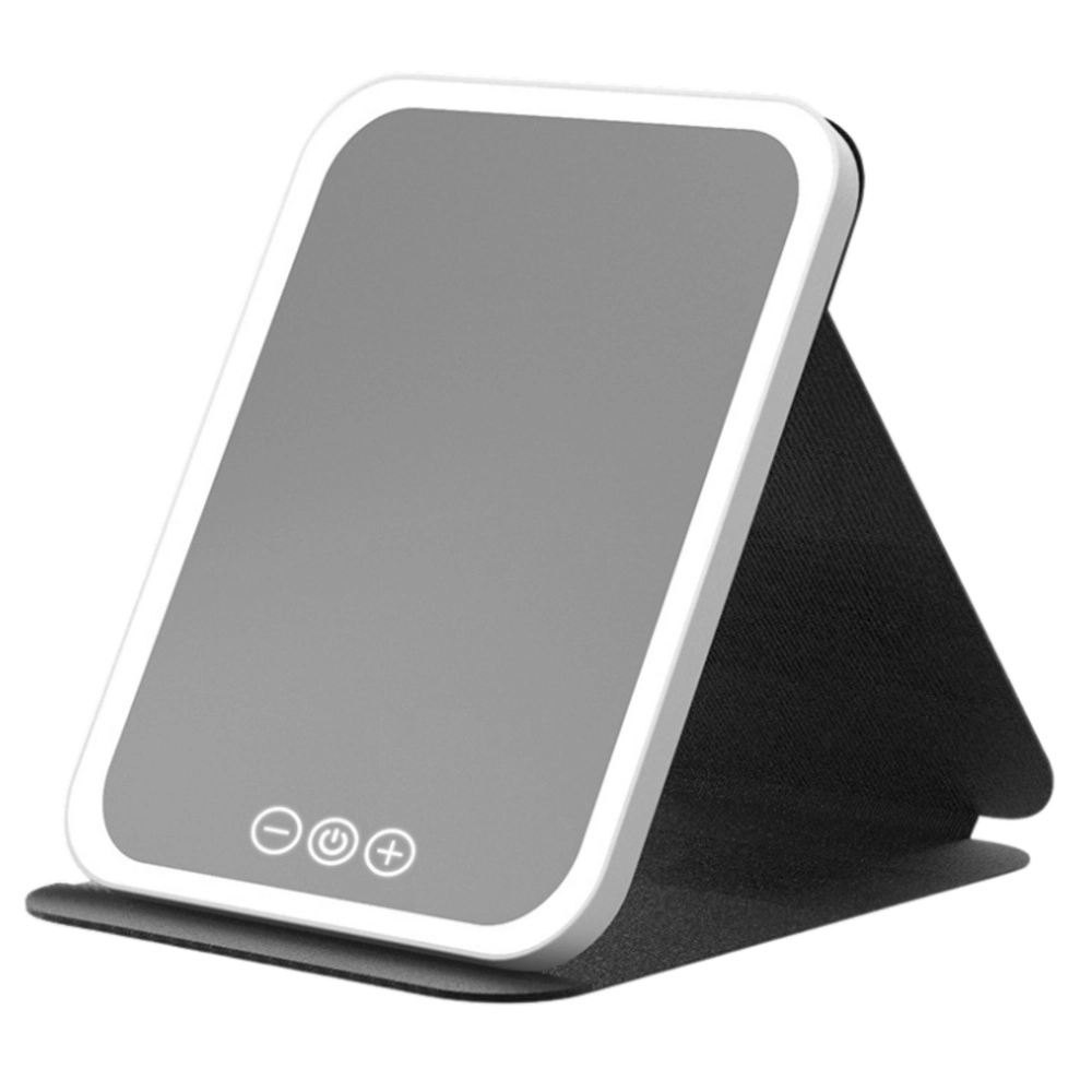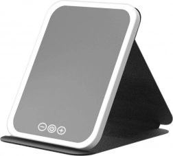 Eleganckie składane lusterko LED jest idealne do codziennego makijażu i pielęgnacji skóry. Oferuje trzy kolory światła (zimne, ciepłe, naturalne), płynną regulację jasności poprzez sterowanie dotykowe oraz praktyczne etui z podstawką z trzema możliwościami podparcia. Dzięki wbudowanemu akumulatorowi 600 mAh ładowanemu przez USB jest wygodne w domu i w podróży.