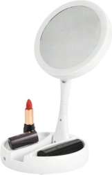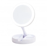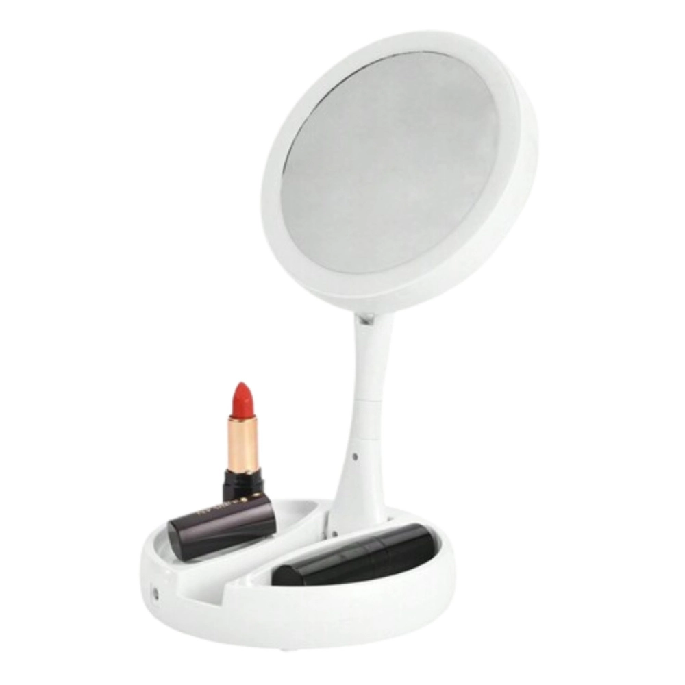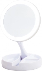 Eleganckie lusterko stołowe z podświetleniem LED i dwustronną powierzchnią (1× oraz powiększenie 10×) jest idealne do makijażu, pielęgnacji cery i zakładania soczewek. Dzięki obrotowej konstrukcji 180° łatwo przełączysz stronę, a praktyczny organizer w podstawie utrzyma kosmetyki pod ręką. Zasilanie zapewniają 4× baterie AA lub przewód MicroUSB dla maksymalnej wygody.