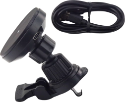 Praktyczny klips na kratkę nawiewu do szybkiej instalacji oraz port USB‑C do zasilania ładowarki. Obsługa jedną ręką zwiększa komfort i bezpieczeństwo.