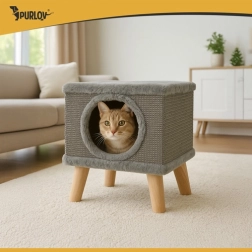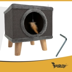 Szukasz kompaktowego i nowoczesnego rozwiązania dla swojego kota? Koci domek PURLOV zapewnia przytulne schronienie z miękkim wnętrzem oraz wytrzymały drapak z naturalnego sizalu po bokach. Podwyższone wykonanie na solidnych drewnianych nogach gwarantuje stabilność nawet przy żywszej zabawie, a antypoślizgowe końcówki chronią podłogę.
