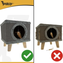 Wytrzymały naturalny sizal zachęca do ostrzenia pazurków, a miękki plusz wewnątrz i na górze zapewnia przyjemne miejsce do wypoczynku.