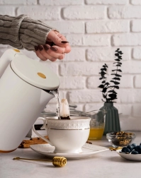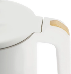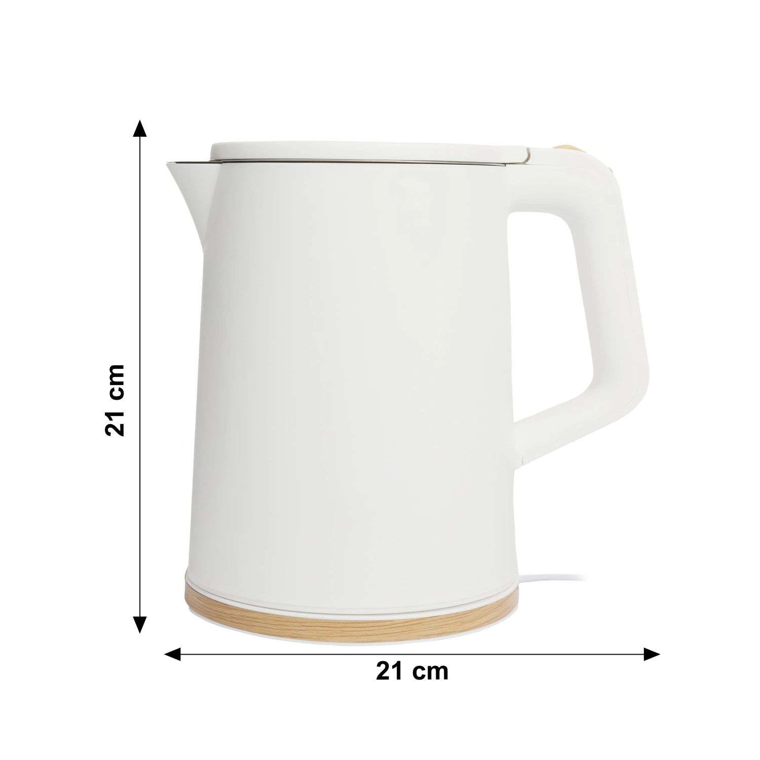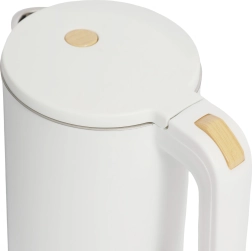 Wewnętrzna stal nierdzewna zapewnia odporność na korozję i łatwe czyszczenie, natomiast podwójna ścianka poprawia izolację i pomaga utrzymać chłodniejszą w dotyku powierzchnię. Elementy bezpieczeństwa, takie jak automatyczne wyłączanie po zagotowaniu oraz zabezpieczenie przed pracą na sucho, chronią Ciebie i urządzenie. Praktyczne detale, takie jak przycisk otwierania pokrywki w uchwycie, wskaźnik świetlny pracy oraz wewnętrzny wskaźnik poziomu, zwiększają komfort codziennego użytkowania.