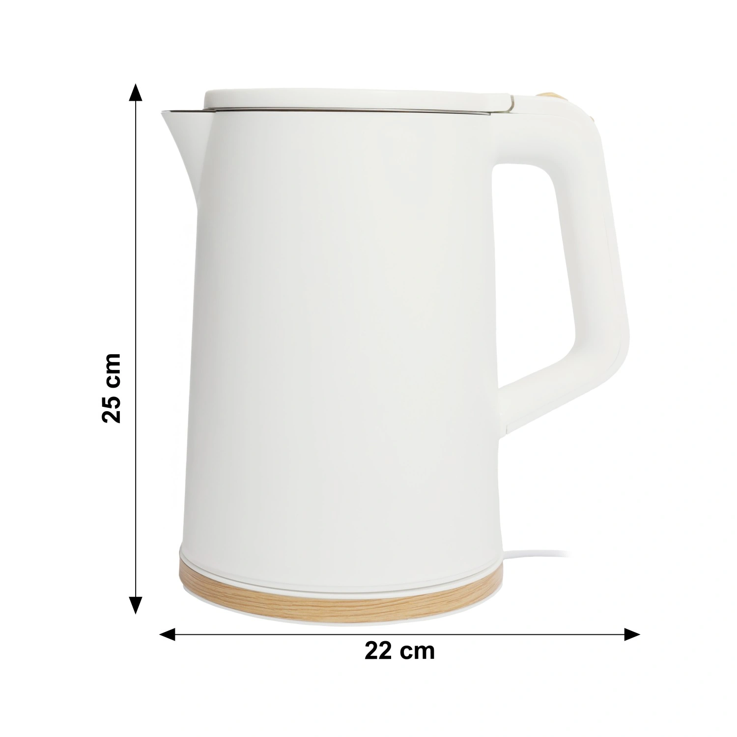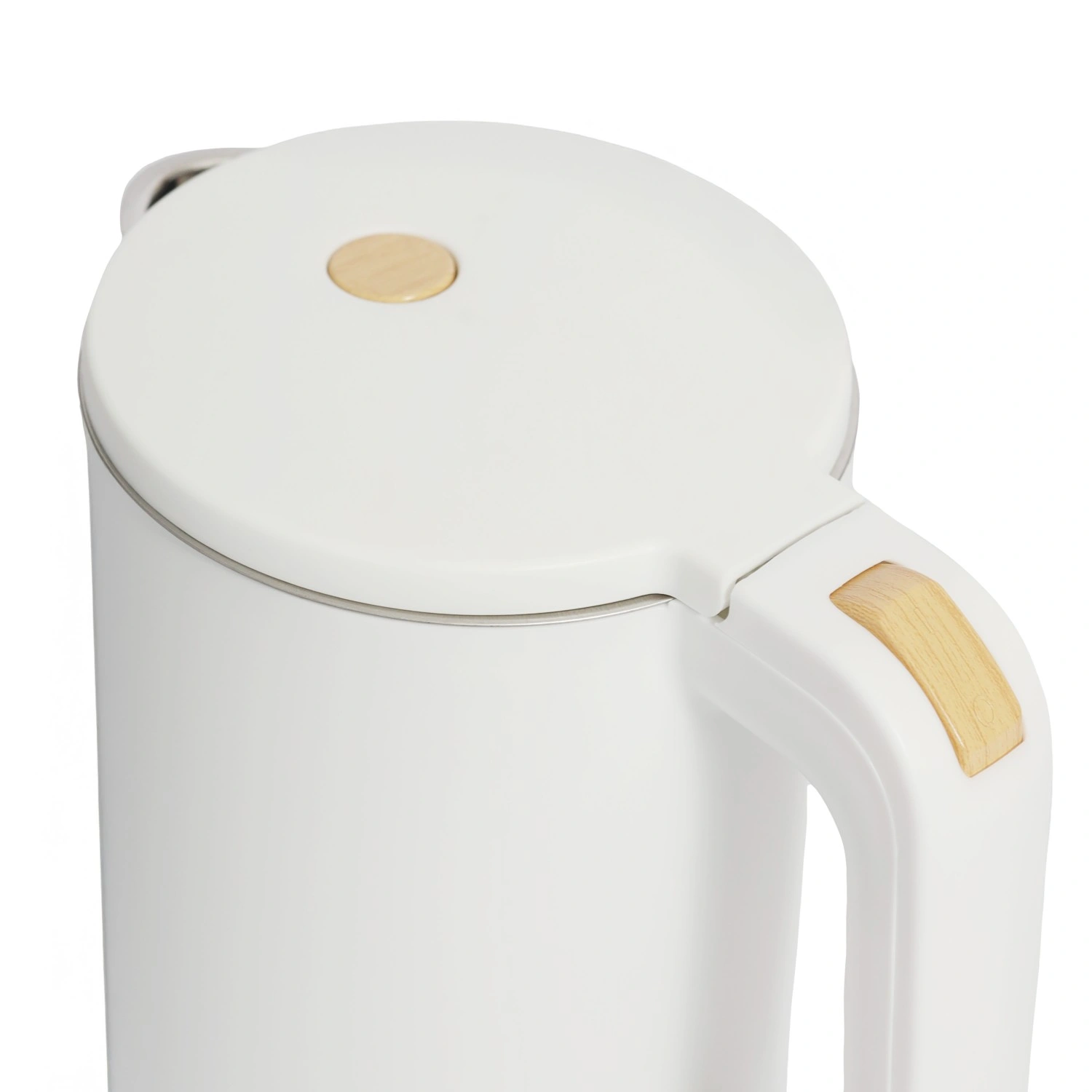 Ciesz się szybkim i bezpiecznym podgrzewaniem wody gdziekolwiek jesteś. Ten podróżny czajnik łączy moc 1500 W z praktyczną pojemnością 1,7 l, dzięki czemu przygotuje herbatę lub kawę dla całej rodziny w kilka minut. Nowoczesny biały design doskonale wpasuje się w każde wnętrze, a dzięki podwójnym ściankom zewnętrzna powierzchnia pozostaje przyjemnie chłodna.