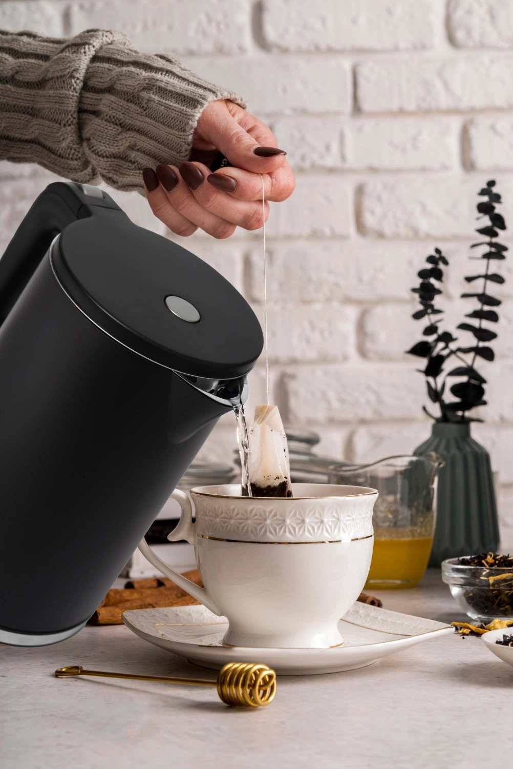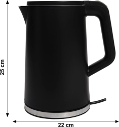 Ciesz się szybkim i wygodnym podgrzewaniem wody wszędzie – na działce, w biurze i w małej kuchni. Czajnik o mocy 1500 W gwarantuje sprawne zagotowanie, nowoczesne czarne wykończenie świetnie pasuje do każdego wnętrza, a podwójny płaszcz lepiej izoluje ciepło i jest przyjemny w dotyku.