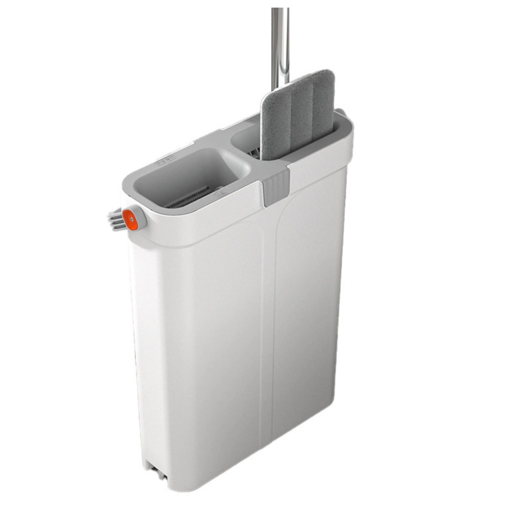 Nowoczesne dwukomorowe wiadro oddziela czystą i brudną wodę, co zapewnia bardziej higieniczne i szybsze sprzątanie. Płaski mop z regulowaną teleskopową rurą łatwo dopasowuje się do wzrostu użytkownika i dociera w wąskie miejsca, pod łóżka czy szafy.