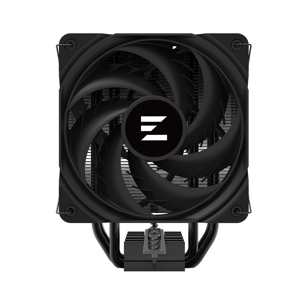 Chłodzenie wykorzystuje cztery precyzyjnie zaprojektowane miedziane heatpipe w połączeniu z aluminiowym żeberkowaniem, co zapewnia równomierne i szybkie rozpraszanie ciepła. Gumowe podkładki antywibracyjne na ramie wentylatora dodatkowo ograniczają przenoszenie drgań na obudowę, dzięki czemu system pozostaje przyjemnie cichy nawet przy wyższych obrotach.