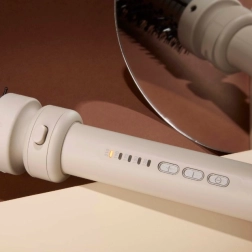 - 5 wymiennych nasadek dla maksymalnej kreatywności: lokówka 13 mm do drobnych loków, lokówka 33 mm do luźnych fal, nasadka stożkowa 13–25 mm do naturalnych, zdefiniowanych loków, potrójna lokówka (3 × 22 mm) dla efektu morskich/syrenich fal oraz okrągła szczotka 38 mm do uniesienia u nasady i luźnych loków.