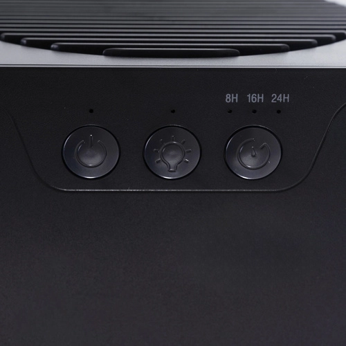 Urządzenie wykorzystuje układ Peltiera do efektywnego osuszania bez kompresora, a więc z niskim zużyciem energii (tylko 36 W) i minimalnym hałasem. Automatyczne wyłączenie przy pełnym zbiorniku chroni przed przelaniem, a timer 8/12/16 h dopasuje pracę do Twojego trybu dnia. Nastrojowe 7‑kolorowe LED i podświetlany zbiornik dodają przyjemnego klimatu we wnętrzu.