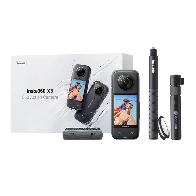 Insta360 X3 Creator Kit to idealny wybór dla podróżników, sportowców i twórców treści, którzy chcą maksymalnej jakości i uniwersalności. Dzięki przetwornikowi 1/2" nagrasz wideo 360° 5.7K oraz wykonasz zdjęcia 360° do 72 MP z realistycznymi detalami. W trybie Single Lens kamera nagrywa do 4K 30 FPS lub ultraszeroko 2.7K 170°, nie brakuje slow motion 4K 120 FPS / 3K 180 FPS ani 8K Timelapse.