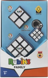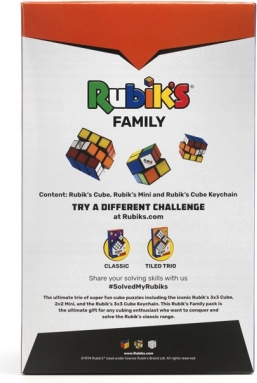 Zawiera standardową kostkę Rubika 3x3, mniejszą wersję 2x2 oraz brelok 3x3 dla zawsze dostępnej zabawy.