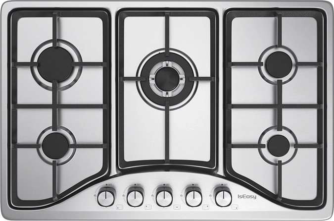 Wydajna gazowa płyta grzewcza IsEasy ze stali nierdzewnej oferuje pięć palników do szybkiego i precyzyjnego gotowania. Dzięki solidnym żeliwnym rusztom, zaworowi bezpieczeństwa oraz kompatybilności z gazem ziemnym i LPG zapewnia niezawodną wydajność, bezpieczną pracę i łatwą konserwację w każdej kuchni.