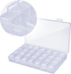 Przezroczysty organizer z przegródkami i etykietami utrzyma Twoje diamenty perfekcyjnie posegregowane. Łatwo znajdziesz właściwy kolor, a praca idzie szybciej.