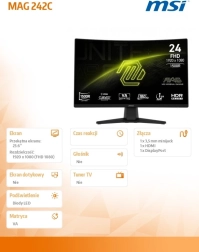 Ciesz się płynną rozgrywką na kompaktowym, ale wydajnym monitorze MAG o przekątnej 23,6", z zakrzywionym panelem i częstotliwością odświeżania do 180 Hz. Dzięki rozdzielczości Full HD, podświetleniu LED i zakrzywionej konstrukcji wciągniesz się w akcję, a szybka reakcja i wysoka częstotliwość odświeżania zapewnią maksymalną płynność bez efektu rozrywania obrazu.
