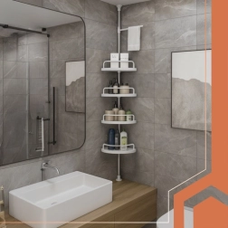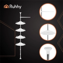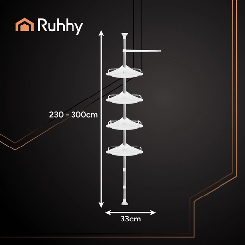 Utrzymuj łazienkę idealnie uporządkowaną dzięki narożnej teleskopowej półce prysznicowej RUHHY. Regulowana wysokość 240–310 cm dopasuje się do większości łazienek bez wiercenia. Cztery poziomy półek, haczyki oraz uchwyt na ręcznik wygodnie pomieszczą kosmetyki i akcesoria łazienkowe. Antypoślizgowe końcówki zapewniają stabilność, a szybki montaż gwarantuje porządek i styl w kilka minut.