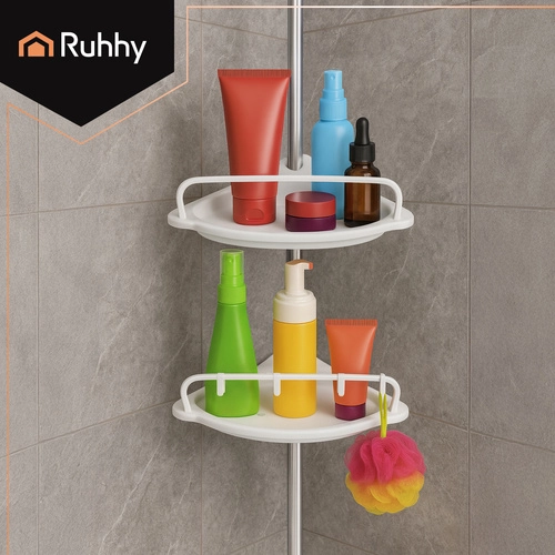 Praktyczna narożna półka RUHHY to sprytne rozwiązanie do małych i dużych łazienek. Dzięki konstrukcji teleskopowej łatwo dopasowuje się do przestrzeni i stabilnie trzyma się między podłogą a sufitem. Bez wiercenia, bez bałaganu – idealna do kabiny prysznicowej i obok wanny.