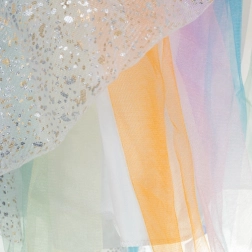 - Błyszczący design: tiul ze złotymi gwiazdkami i eleganckie złote skrzydła.