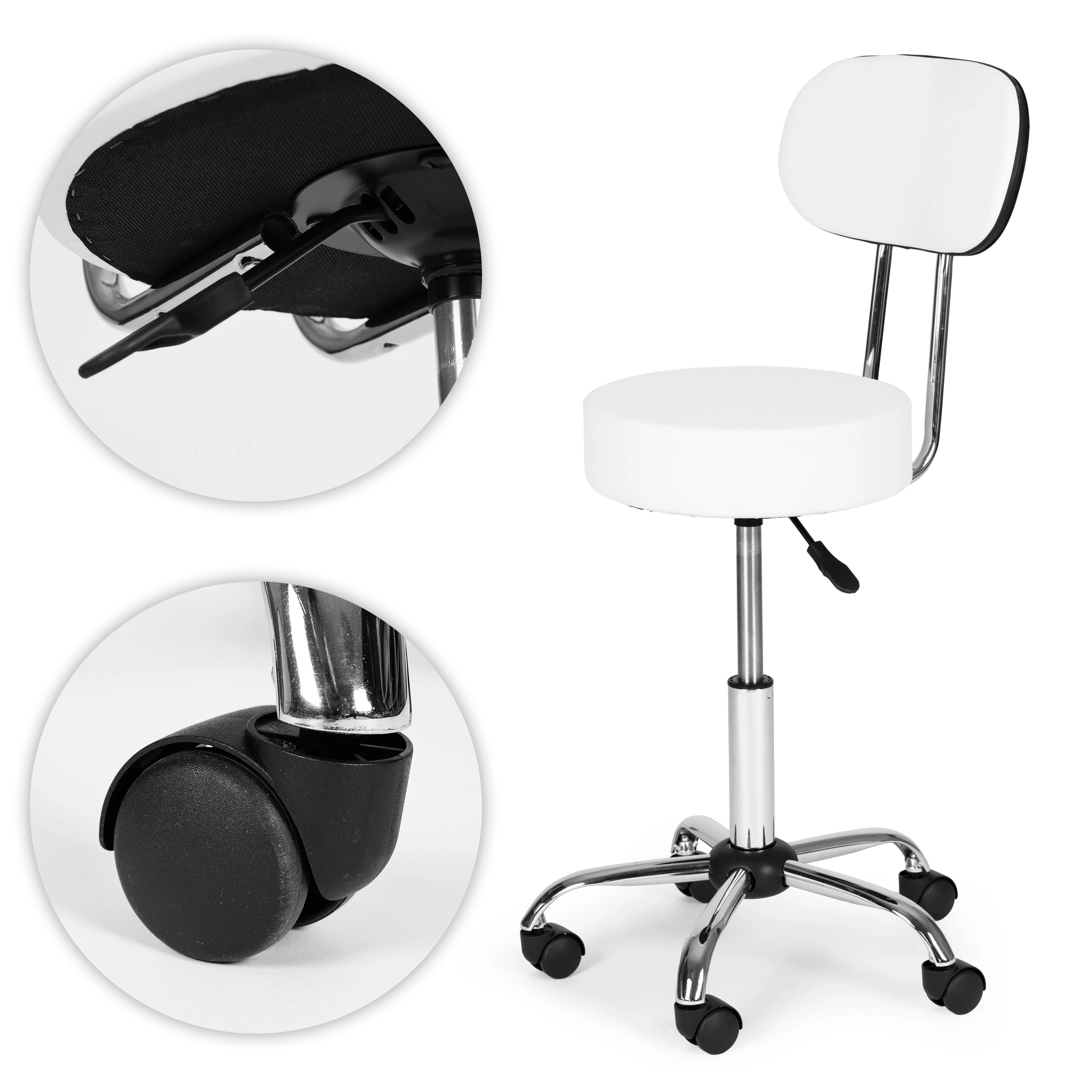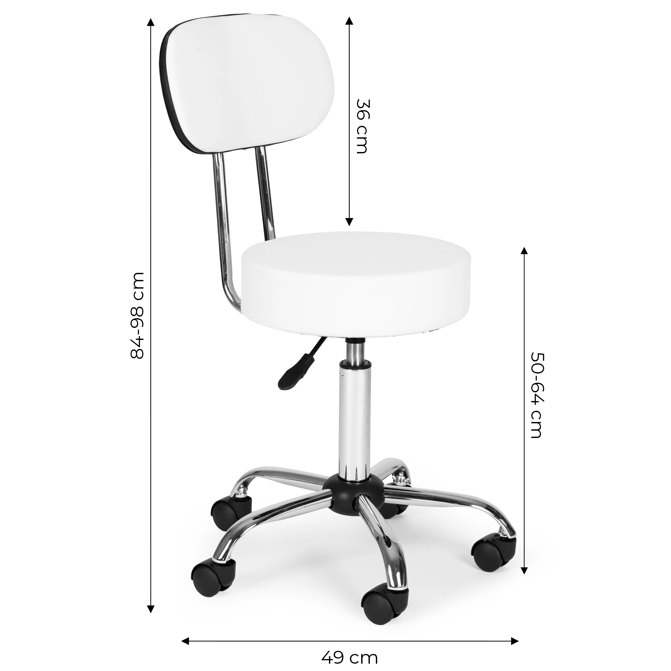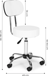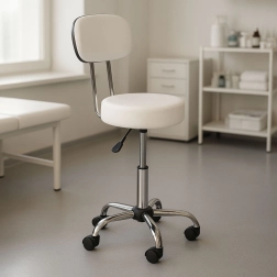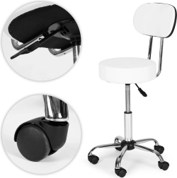 Obrotowy stołek z oparciem ModernHome to idealny wybór do salonów kosmetycznych, fryzjerskich, gabinetów, a także studiów masażu i tatuażu. Łączy ergonomię i funkcjonalność z czystym, nowoczesnym designem w białym kolorze, pasującym do każdego wnętrza.