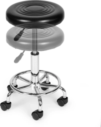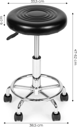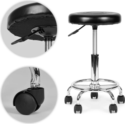 Profesjonalny obrotowy stołek został zaprojektowany do środowisk, w których komfort, mobilność i funkcjonalność są kluczowe. Świetnie sprawdzi się w salonach kosmetycznych i fryzjerskich, gabinetach lekarskich, studiach masażu i tatuażu. Solidna metalowa konstrukcja ze stabilną, pięcioramienną podstawą oraz wysokiej jakości kółka zapewniają łatwe przemieszczanie po różnych typach podłóg.