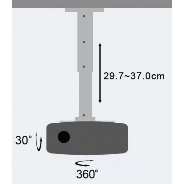 Uniwersalne sufitowe ramię do projektora z regulowaną długością 30–37 cm i udźwigiem 15 kg. Wytrzymała aluminiowa konstrukcja, regulacja nachylenia i obrotu oraz zintegrowane prowadzenie kabli zapewniają bezpieczny i estetyczny montaż w domu, biurze i przestrzeniach komercyjnych.
