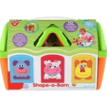 Dzieci dopasowują 10 różnych kształtów do odpowiednich otworów i w naturalny sposób przyswajają kształty, kolory oraz nazwy zwierzątek z farmy.