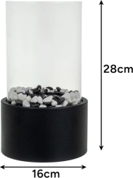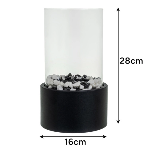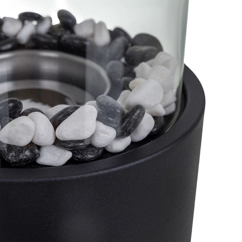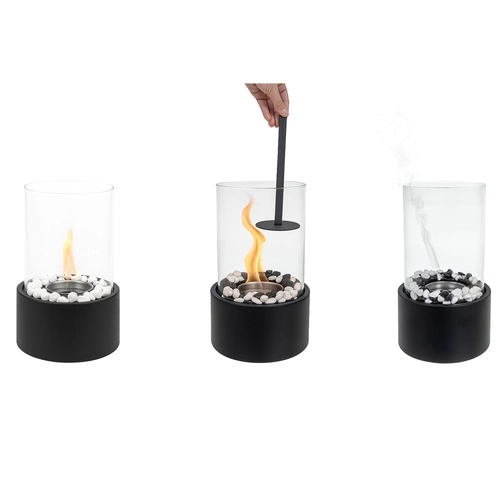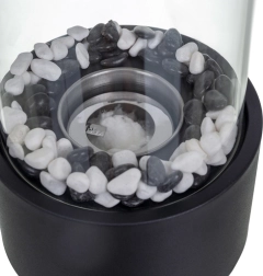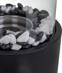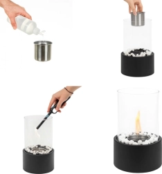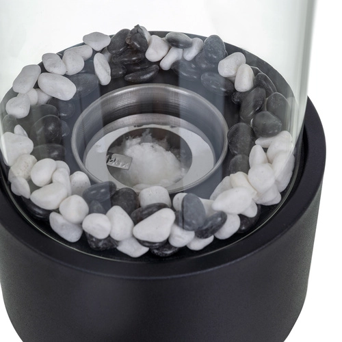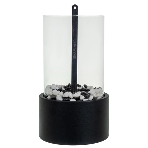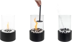 Stalowy zbiornik z chłonnym włóknem ceramicznym wydłuża czas palenia i ułatwia obsługę. W zestawie znajduje się gasiwo/wyłącznik (tłumik płomienia) dla wygodnego gaszenia. Prosty montaż i piankowe podkładki chroniące meble przed zarysowaniem czynią ten biokominek praktycznym rozwiązaniem do codziennego użytku.