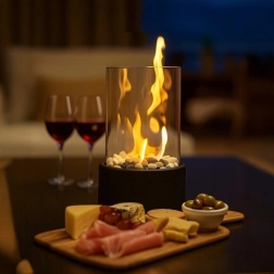 Biokominek KAMINER to elegancki dodatek do wnętrz w stylu loftowym, który jednocześnie tworzy przytulny klimat. Dzięki spalaniu na bioetanol możesz cieszyć się płomieniem bez komina, bez sadzy, popiołu i zapachu. Szklane ścianki chronią płomień i otoczenie, a stabilna konstrukcja zapewnia bezpieczne użytkowanie w domu, biurze i na tarasie.