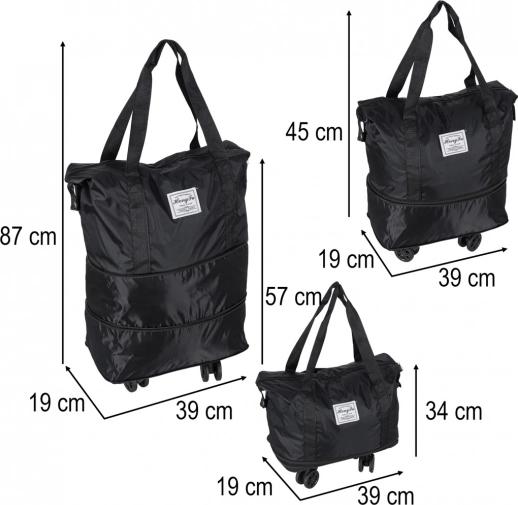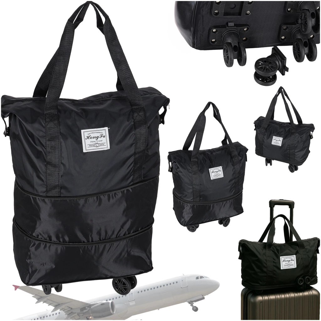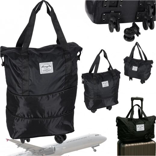 Składana torba podróżna na kółkach, pojemna, 3 rozmiary, czarna