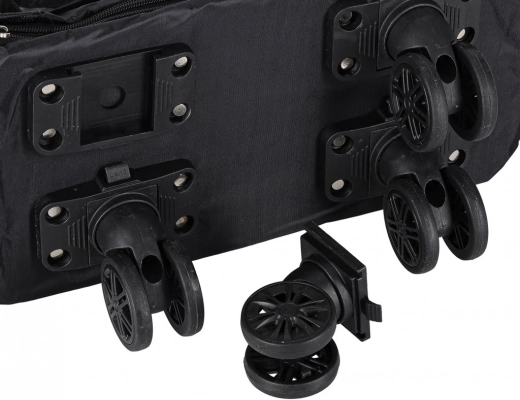 Łatwą obsługę zapewniają obracające się o 360° kółka z PVC, które są dodatkowo odpinane i osadzone na solidnych prowadnicach. Praktyczne kieszenie zewnętrzne i wewnętrzne utrzymają drobiazgi pod ręką, boczne uchwyty i wysokie rączki ułatwią przenoszenie oraz ciągnięcie.
