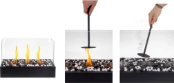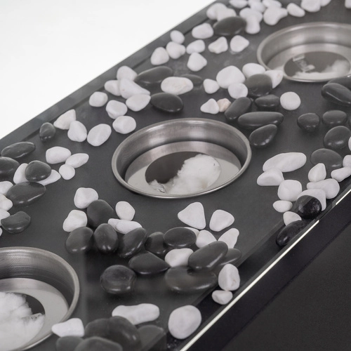 W zestawie znajdują się 3 palniki ze stali nierdzewnej z chłonnym włóknem ceramicznym dla dłuższego spalania, dekoracyjne białe i czarne kamyki oraz przyrząd do gaszenia. Łatwy montaż i obsługa sprawiają, że to doskonały wybór do szybkiego stworzenia nastroju i ciepła podczas chłodnych wieczorów.