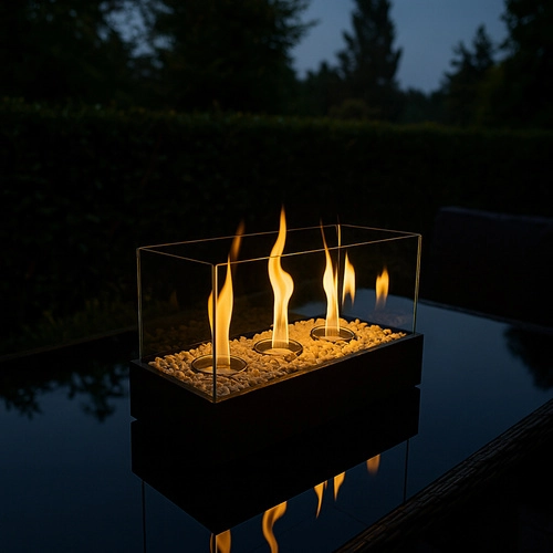 Elegancki biokominek KAMINER jest idealny do mieszkania, domu i na taras. Spala bioetanol i dzięki czystemu spalaniu nie wytwarza dymu, sadzy ani nieprzyjemnego zapachu – nie potrzebujesz komina. Cztery szklane ścianki chronią płomień przed kontaktem i przeciągiem, a loftowy czarny korpus doskonale uzupełnia nowoczesne wnętrza.