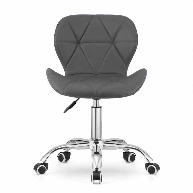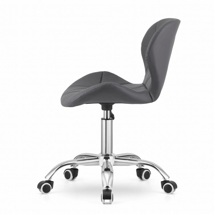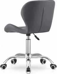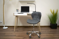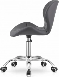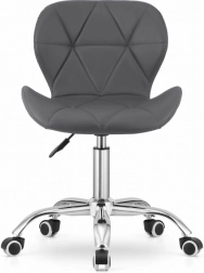 Stylowe krzesło obrotowe AVOLA w eleganckim szarym kolorze oferuje nowoczesny design, szerokie ergonomiczne oparcie oraz komfortowe tapicerowanie z ekoskóry. Stabilna chromowana 5-ramienna podstawa na gumowanych kółkach zapewnia płynny ruch i ochronę podłogi. Świetny wybór do biura, pokoju dziecięcego, studia i salonu piękności.