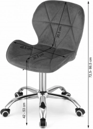 Stylowe krzesło obrotowe AVOLA oferuje nowoczesny design, aksamitnie miękką tapicerkę z weluru oraz szerokie, ergonomiczne oparcie dla wygodnego siedzenia. Stabilna pięcioramienna podstawa z gumowanymi kółkami chroni podłogę i zapewnia płynny ruch. Dzięki regulacji wysokości oraz solidnej, wytrzymałej konstrukcji idealnie sprawdzi się w pokoju dziecięcym, gabinecie, biurze i recepcji.